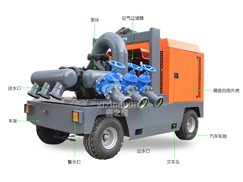 市政排污工程、市政應(yīng)急排澇、防洪抗旱工程、農(nóng)田灌溉工程等。 自吸移動泵車是在常規(guī)的自吸泵移動泵車的基礎(chǔ)上開發(fā)成功的產(chǎn)品。該高吸程強自吸移動泵車集高吸程和無堵塞排污于一體,采用柴油機驅(qū)動軸向回流外混式,并通過泵體、葉輪流道的獨特設(shè)計,使用時不需要安裝底閥和灌引水。高吸程強自吸泵移動泵車可吸排含有大顆粒固體和長纖維雜質(zhì)液體,可廣泛適用于市政排污及防澇工程、農(nóng)業(yè)灌溉等。該高吸程強自吸移動泵車具有移動方便、快速使用、自吸性能超好、排污能力強、高效節(jié)能等優(yōu)點。